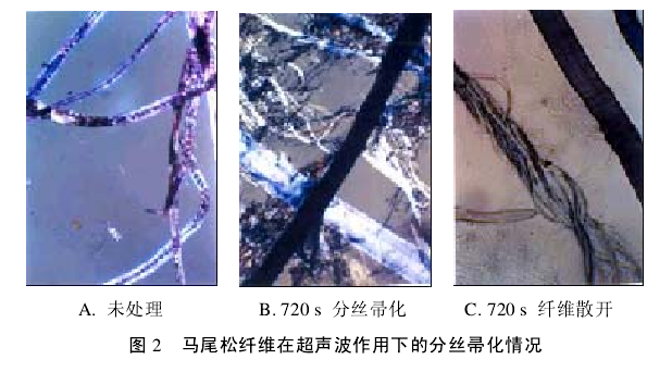 超聲波處理對(duì)纖維素纖維形態(tài)結(jié)構(gòu)的影響 進(jìn)行處理,用多功能生物顯微鏡、掃描電鏡對(duì)纖維素原料在超聲波作用下發(fā)生的形態(tài)結(jié)構(gòu)、超微結(jié)構(gòu)變化進(jìn)行研究。采用超聲波技術(shù)對(duì)纖維素進(jìn)行預(yù)處理,對(duì)打開纖維素微孔結(jié)構(gòu),提高纖維素模板孔洞對(duì)化學(xué)試劑的可見度及化學(xué)反應(yīng)活性,合成新的纖維素功能材料,具有重要意義。